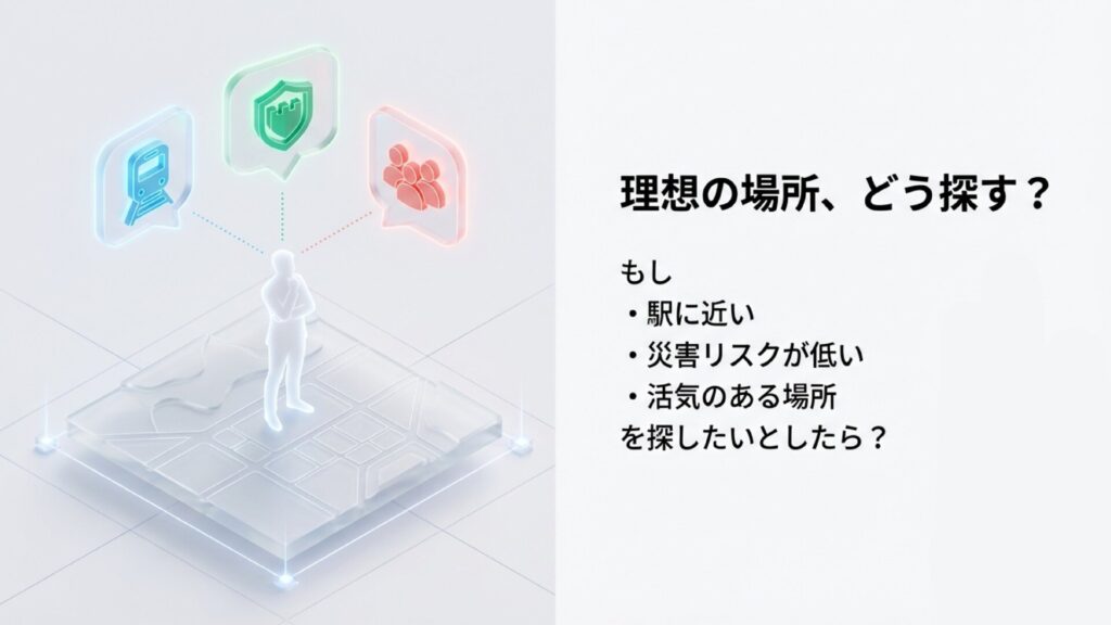 「駅に近くて、災害リスクが低く、活気のある場所に住みたい」