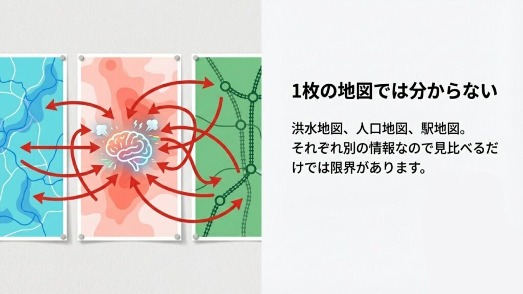 地図と地図を重ねることで、論理的に条件を絞り込める