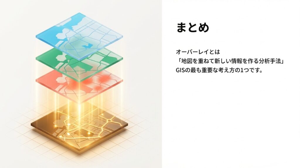 - オーバーレイはGISの基本であり、最も強力な機能の一つ