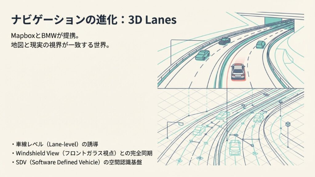 MapboxはBMWと連携し「3D Lanes」を発表。