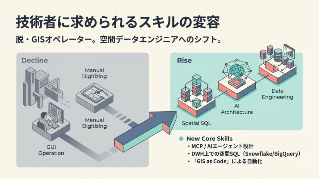 Snowflake等DWH内空間処理 × 自律エージェント連携がエンタープライズGISの核心へ。
