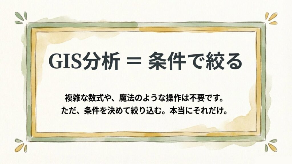 GISを使った「分析」の正体は、複雑な数式やプログラミングではありません。