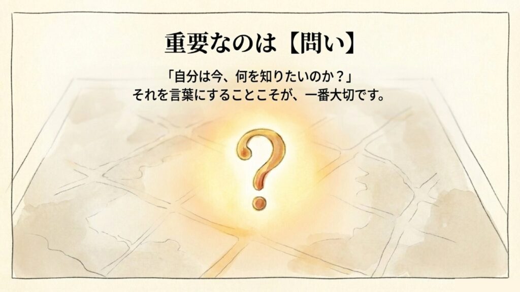 大切なのは、「何を知りたいか」を言葉にし、それを条件として整理することです。